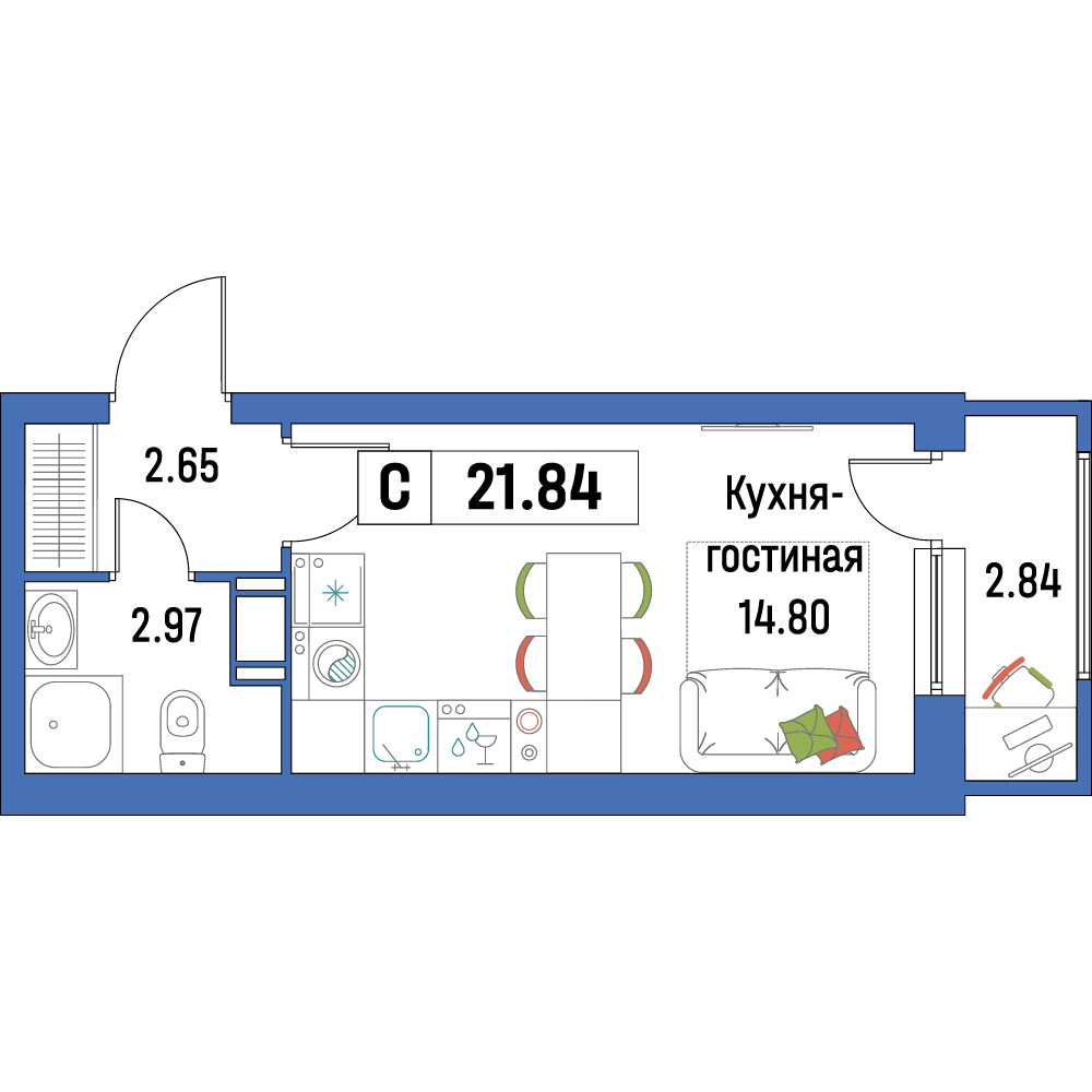 | Студия | 21.84 - 29.51 м2 | до 148168 руб. кв. м. |