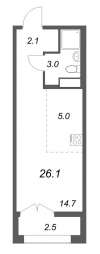 | Студия | 26.1 - 38.8 м2 | до 134361 руб. кв. м. |