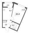 | Однокомнатная | 30.4 - 46.7 м2 | до 135973 руб. кв. м. |