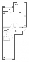 | Двухкомнатная | 55.6 - 73 м2 | до 126987 руб. кв. м. |