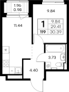 | Однокомнатная | 30 - 38 м2 | до 162492 руб. кв. м. |