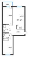 | Двухкомнатная | 59.2 - 79 м2 | до 109710 руб. кв. м. |