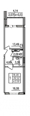 | Однокомнатная | 39.53 - 41.59 м2 | до 137095 руб. кв. м. |