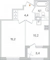 - Площади: общая: 35,60м2 , жилая: 15.2 м2 , кухни: 10.2 м2